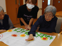 皆様ひまわりの花を手に持ち、真剣に貼る場所を考えながら貼られています!(*^_^*)