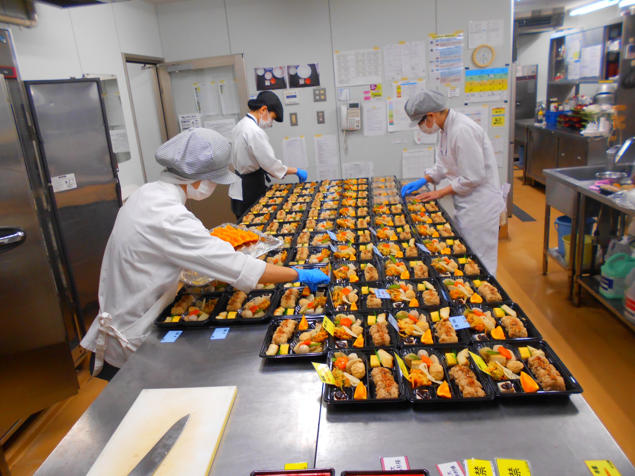 厨房職員の絶妙なフットワークで着々と盛り付けが進んでいます(^^)/
