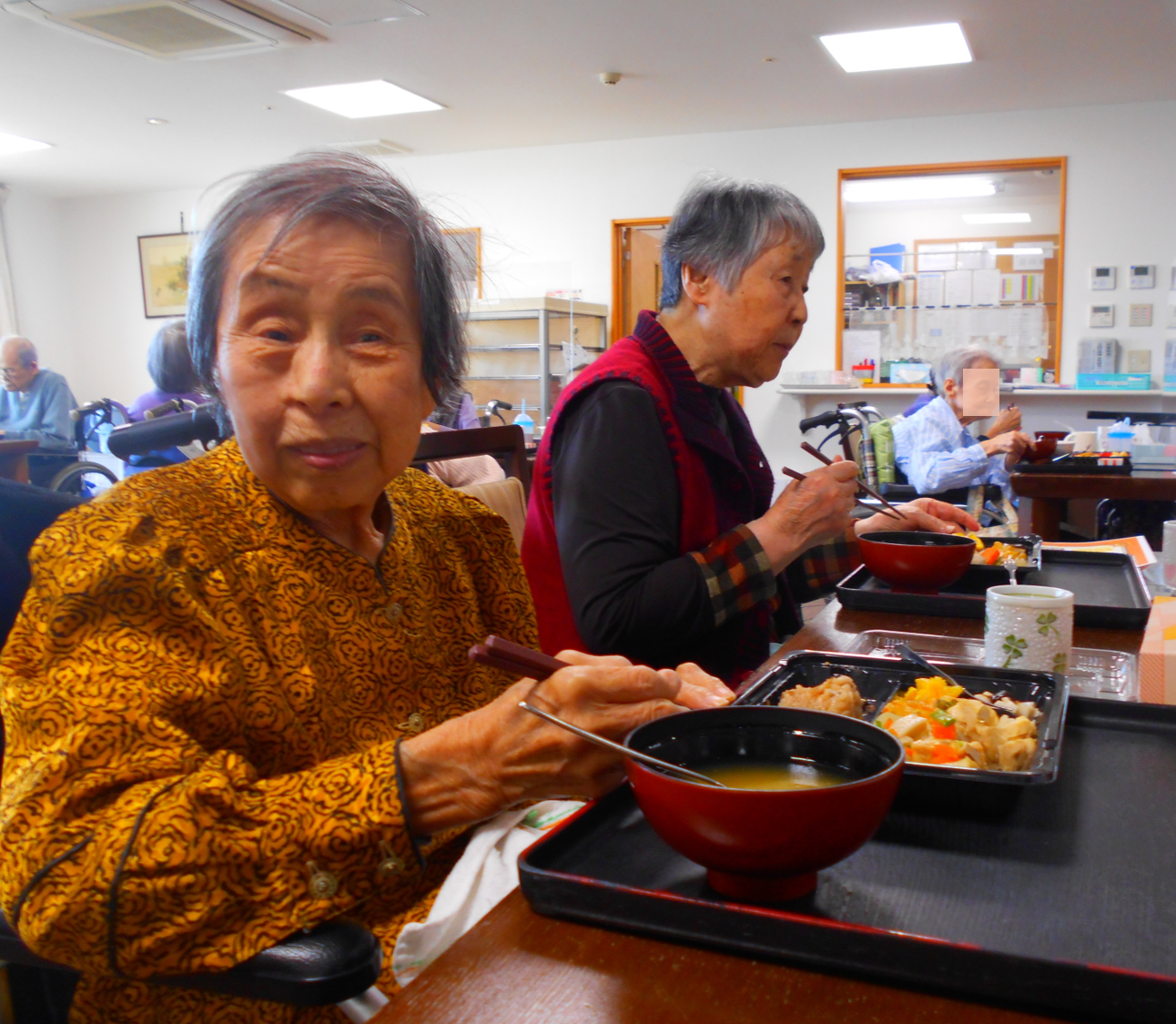 今回の『春日彩膳』弁当は、白米と大豆をほうじ茶で炊いた茶飯となっており、優しい味付けになっています。