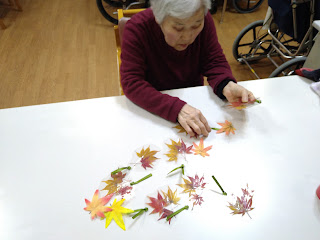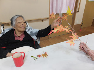 今年は紅葉を見に行くことが出来ないので、施設の中で紅葉狩りを楽しんで頂きました。🍁
