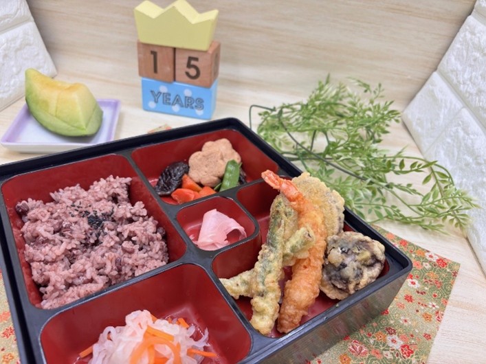 お重にはふっくら美味しい赤飯、サクサクの天ぷら、