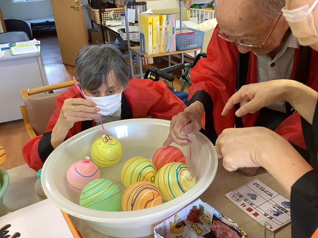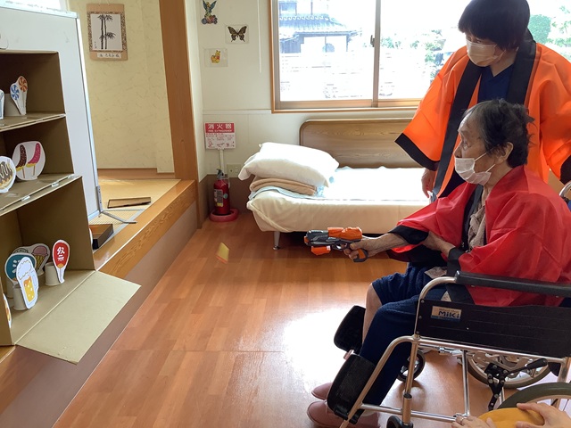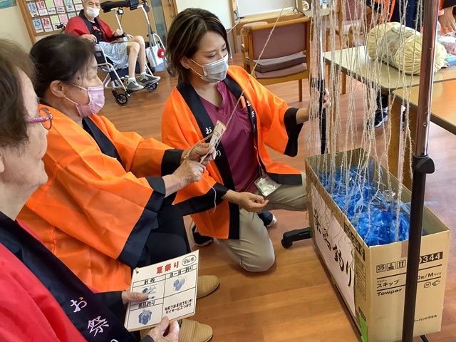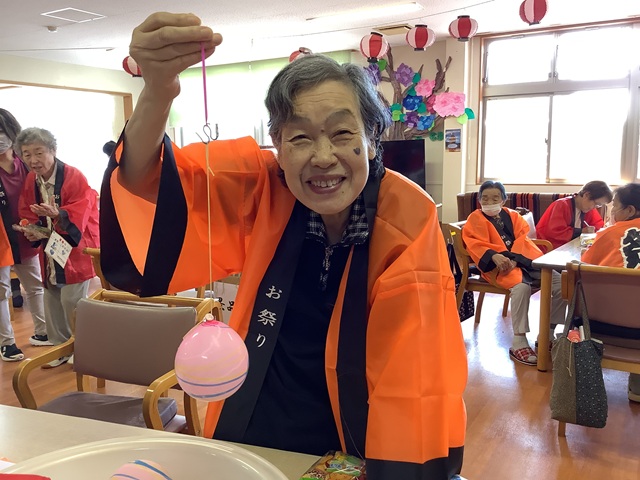午後からは昔懐かしい「ヨーヨー釣り」「射的」「景品釣り」を行いました。お客様もはっぴを着て気分も盛り上がります。