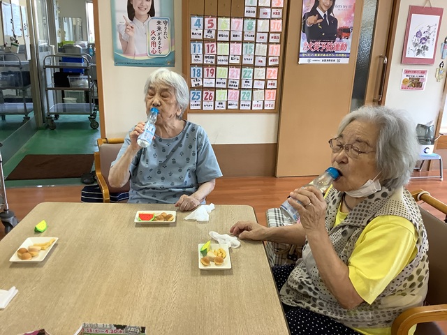 おやつはラムネとお菓子。「懐かしい~」「おいしいわ~」と喜んで下さいました。