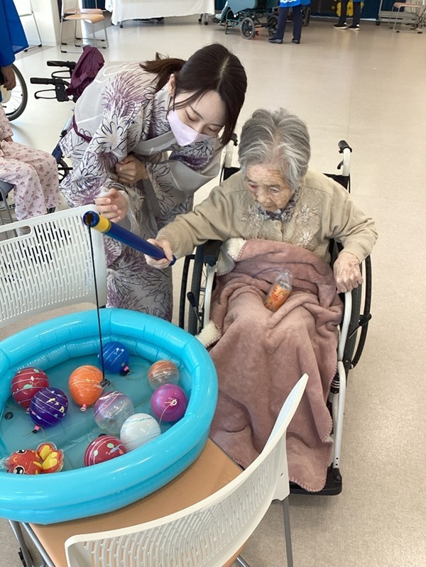 磁石でお好きな色の水ヨーヨーを釣ってもらいました☆