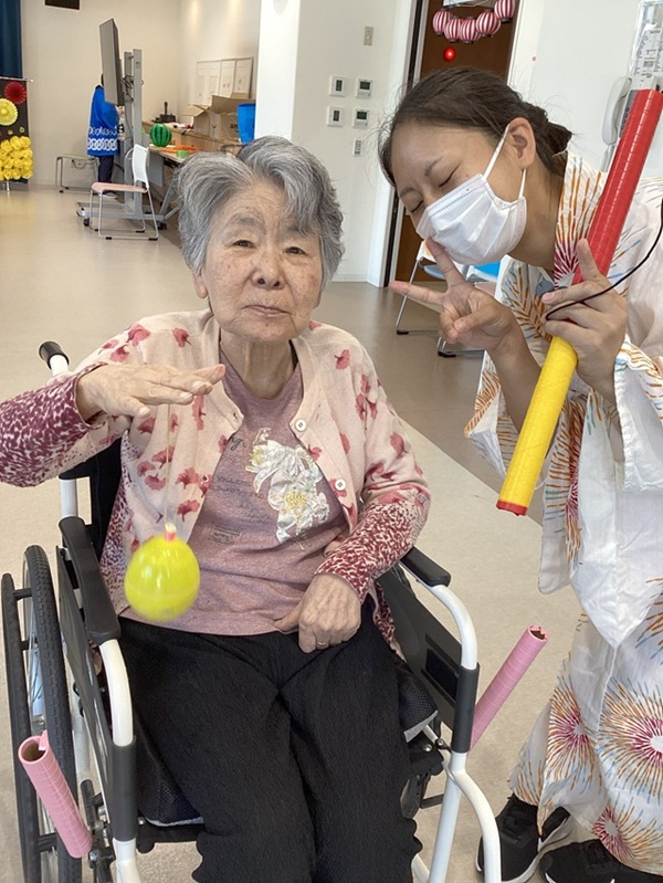 当たっても的が倒れなかったりしたのですが見事、的を倒すご利用者の方が何名かいらっしゃいました!!