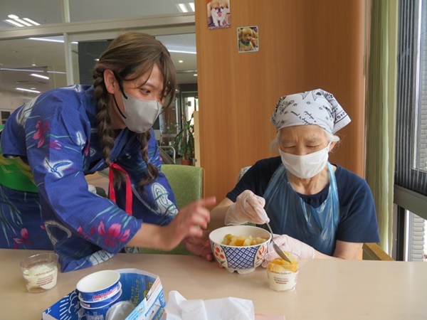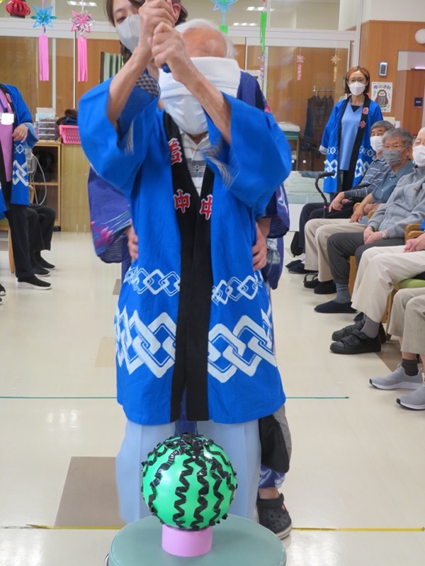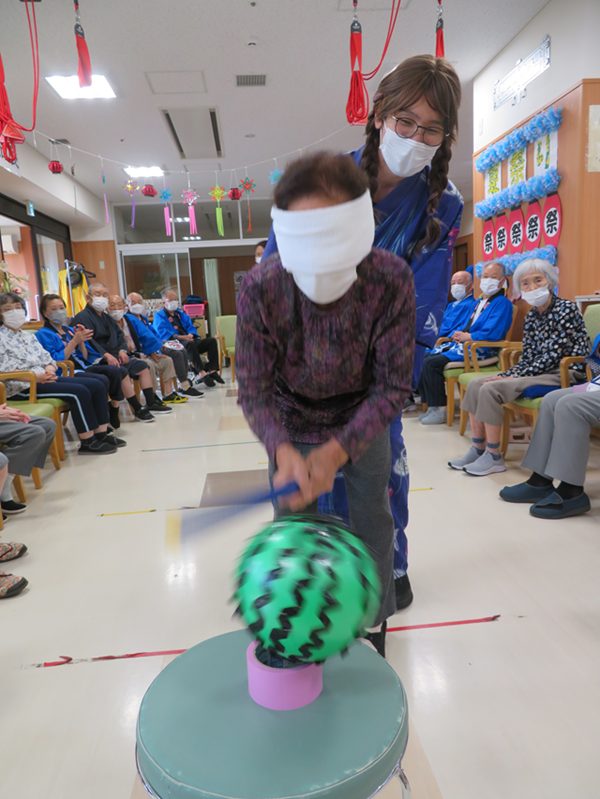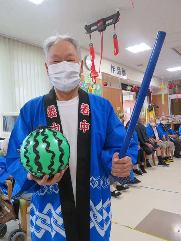 今年は、盆踊り・スイカ割り・おやつレク(フローズンヨーグルトづくり)をしました!