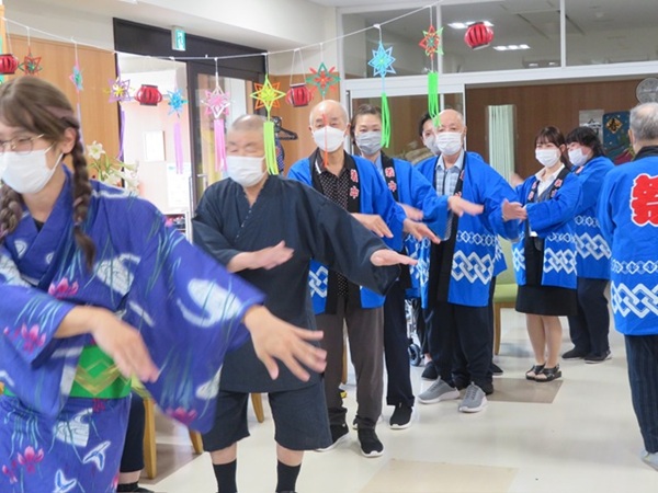 盆踊りは、仙台七夕音頭の曲に合わせて皆さんと一緒に踊りました!(^^)!