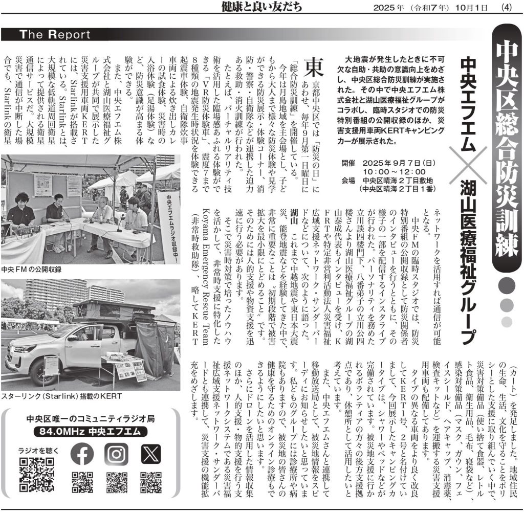 2025年10月1日発行の『健康と良い友だち』にて、中央区総合防災訓練の取り組みが紹介されました。
