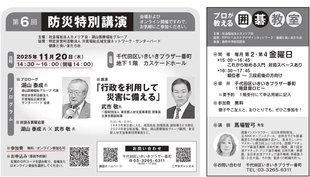 あわせて弊社開催の第6回防災特別講演(11月20日)も下記にご案内いたします。