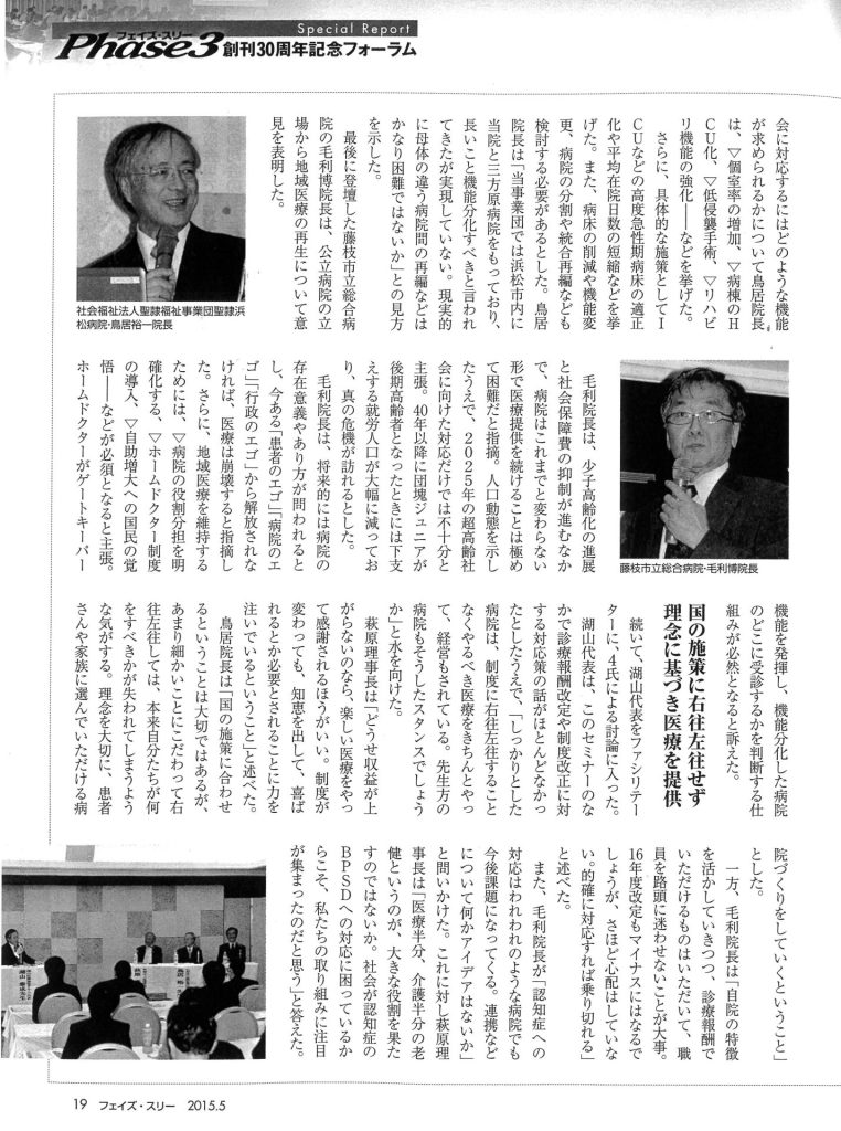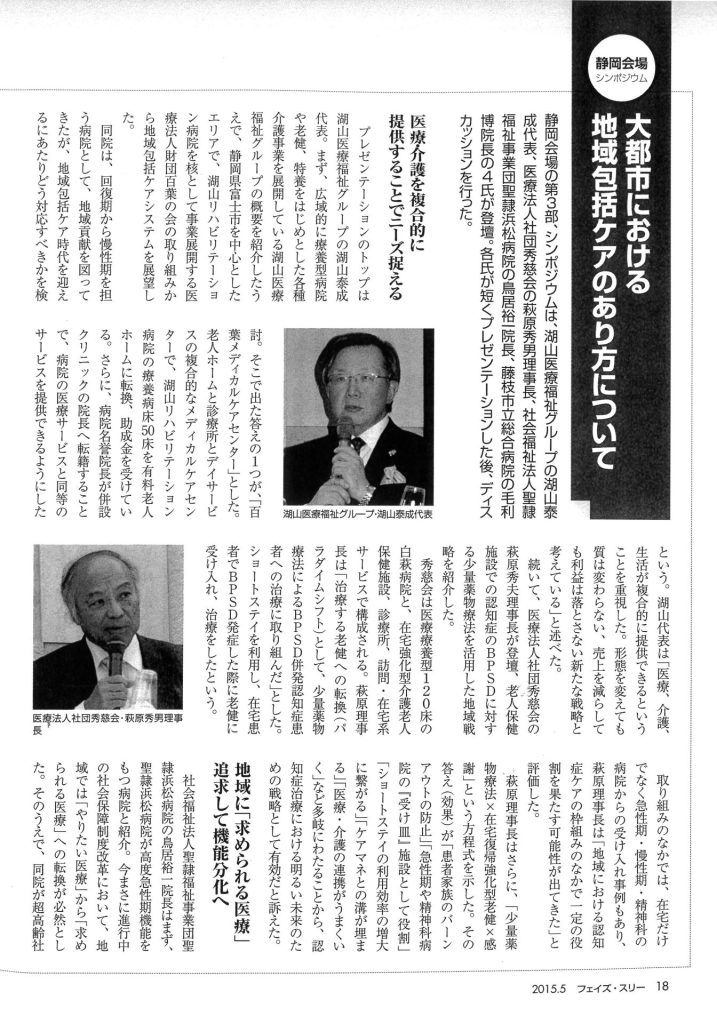 2015.05 雑誌フェイズ・スリー掲載 同誌主催 「大都市のおける地域包括ケアのあり方について」4氏がプレゼンテーション及びディスカッションを行う 静岡会場シンポジウム第3部より 2025年10月9日 イベント情報,ヘルスケアデザイン最前線,広報誌紹介Posted by ujiie