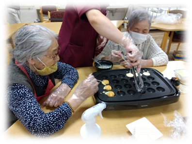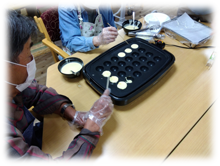 🍩ふんわり焼けたよ♪ デイサービスのおやつ時間🍩~みんなで楽しく♪手作り鈴カステラ~