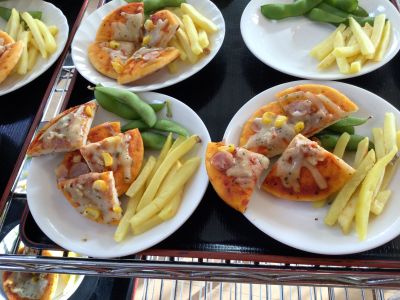 おやつは出来立てピザとポテトでかんぱーい🍺