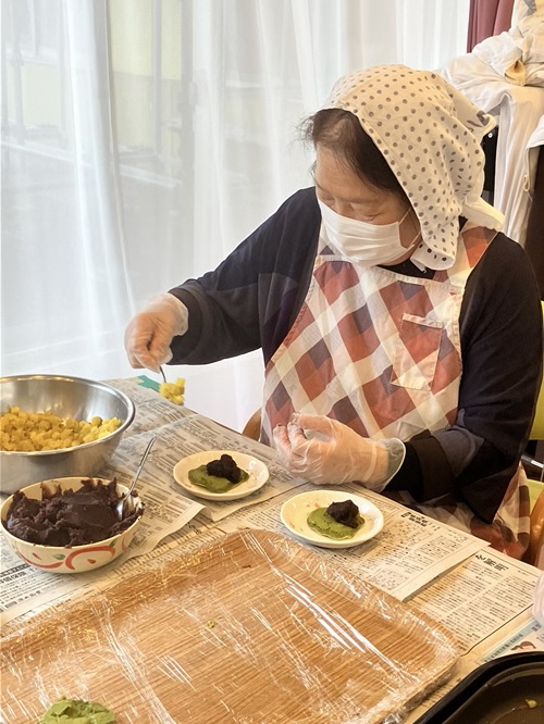 《医療法人社団 緑愛会》かがやきの丘「秋の抹茶どら焼き作り」通所リハビリ