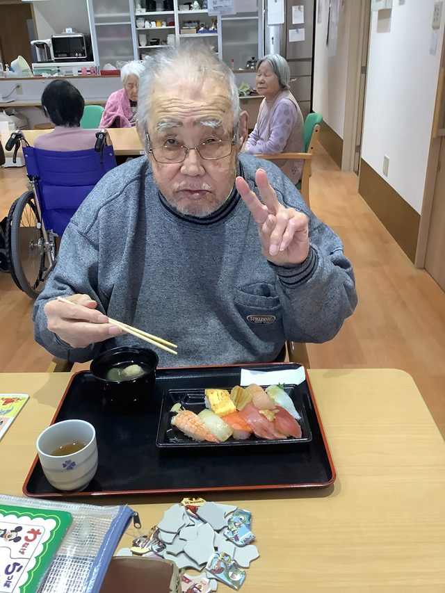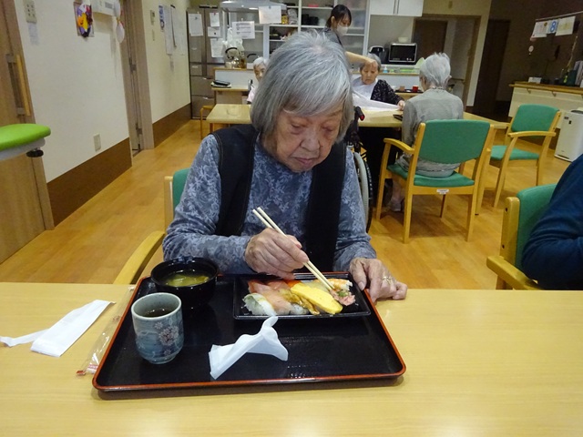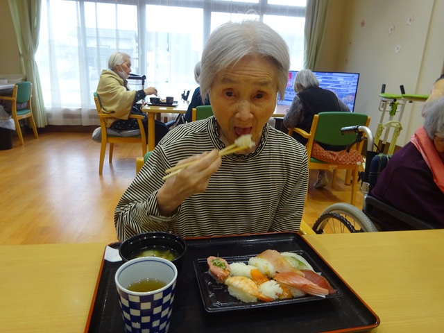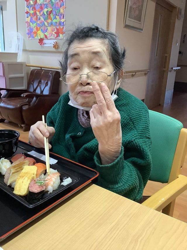 11月18日にグループホーム華つばきにて昼食に握り寿司を召し上がられました。