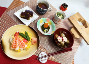 花形に盛り付けた散らし寿司は、見た目も華やかで