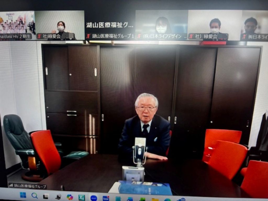 閉講式ではWEBにて湖山代表、久保理事長のお言葉を頂いた後、杏林大学の