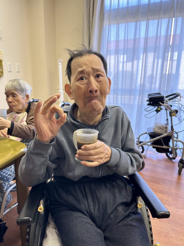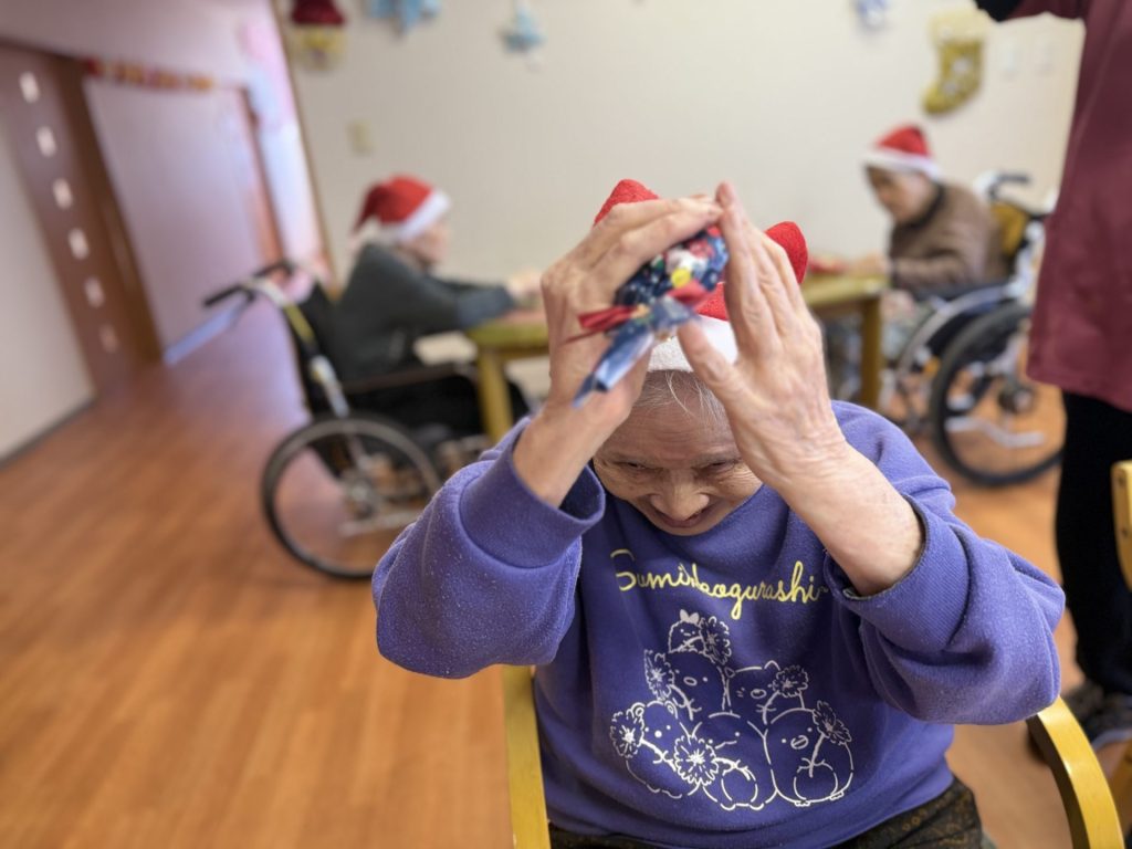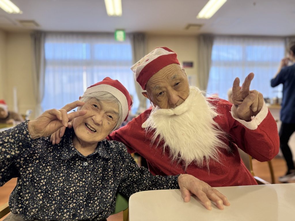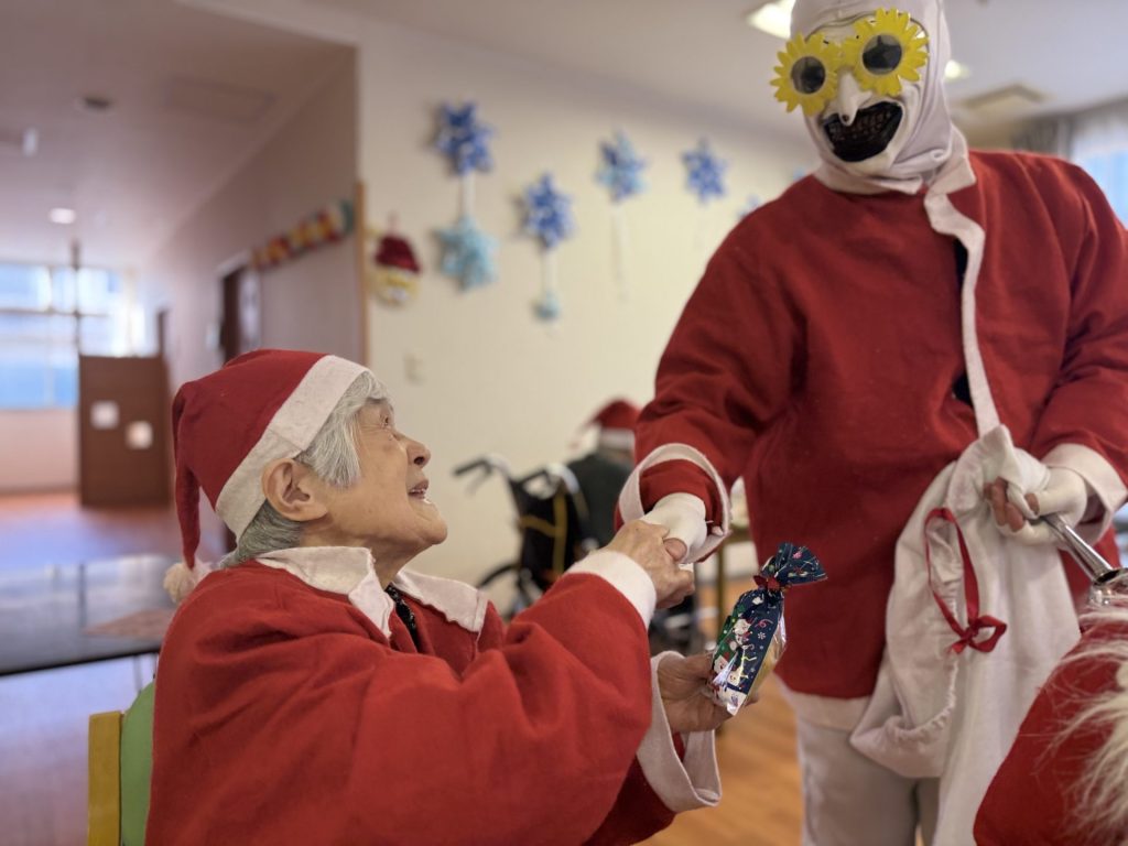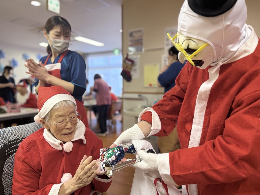 午後からは、クリスマスパーティーを開催しました。お客様全員で大きな声を出しサンタさんを呼び、少々変わった格好のサンタさんが現れました。拍手と笑い声で迎えてくださいました。