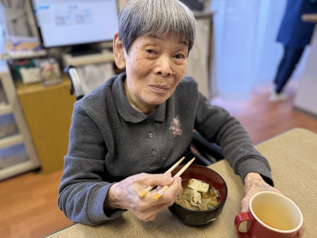 今年も三種類のお鍋の味を用意し、色々な味を楽しまれ「美味しいよ!」と喜ばれました。普段食がなかなか進まないお客様もおかわりをされ大好評でした。
