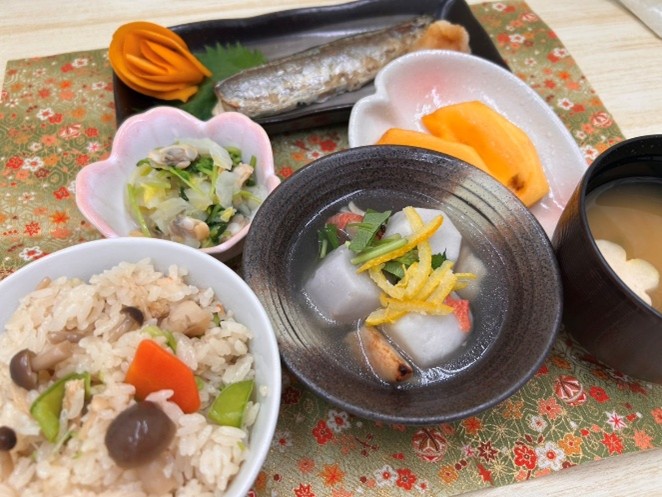 きのこご飯と秋らしいお食事を召し上がっていただきました。