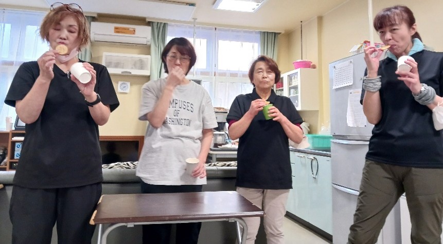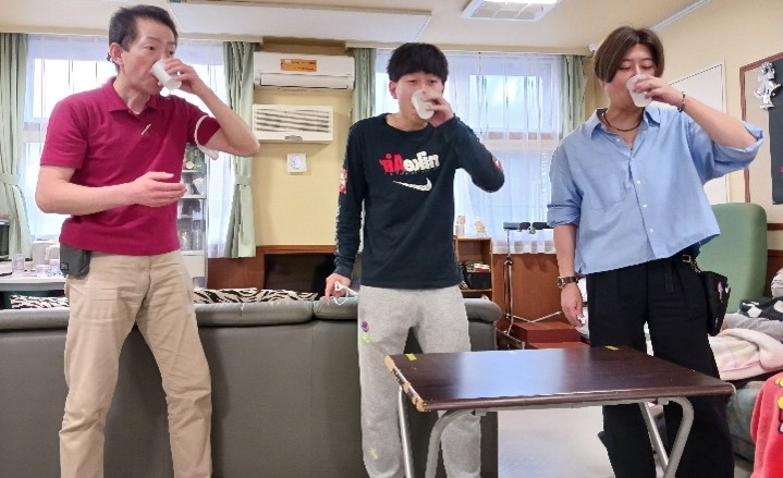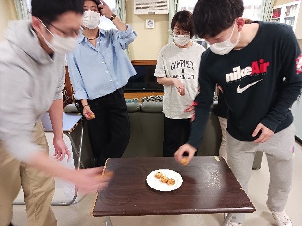 誰がわさび入りのたこ焼きを食べたのか、ご利用者様に当てていただきました。