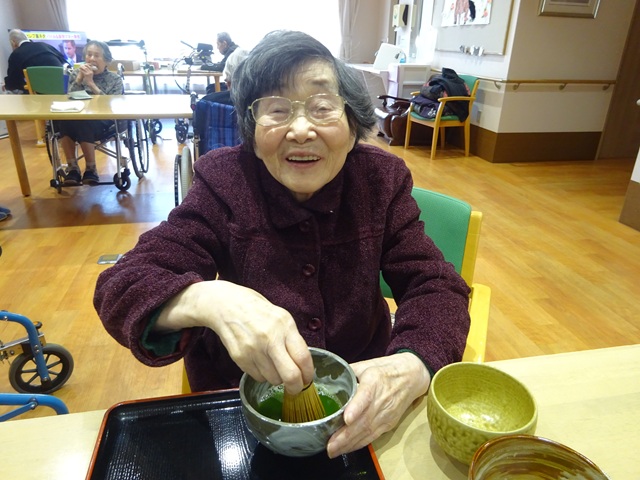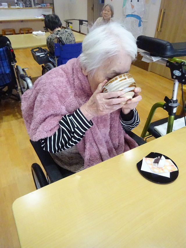 お客様のたてられた温かい抹茶を飲まれ、満足そうに息をつかれていました。
