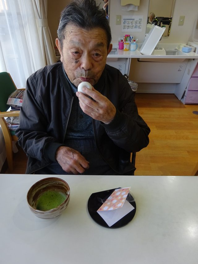 「おいしいです」と言われながら饅頭を頬張っておられ、笑顔が多く見られました