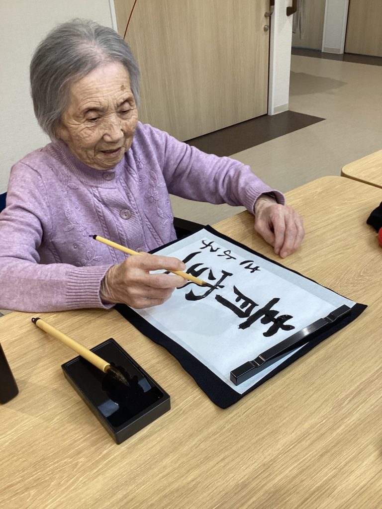 「字を書くのはちょっと苦手で…」とお話されるお客様も多く、最初は遠慮がちな雰囲気もありました。しかし、職員の声かけや周囲の応援をきっかけに、「せっかくだからやってみようかな」と筆を手に取ってくださる方が次第に増えていきました✨