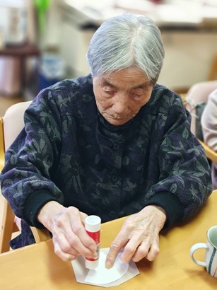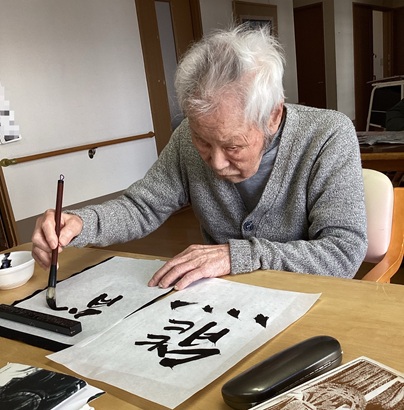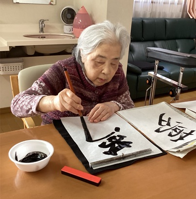 午後から創作レクの時間です。年の初めにちなんで、書初めに取り組みました!