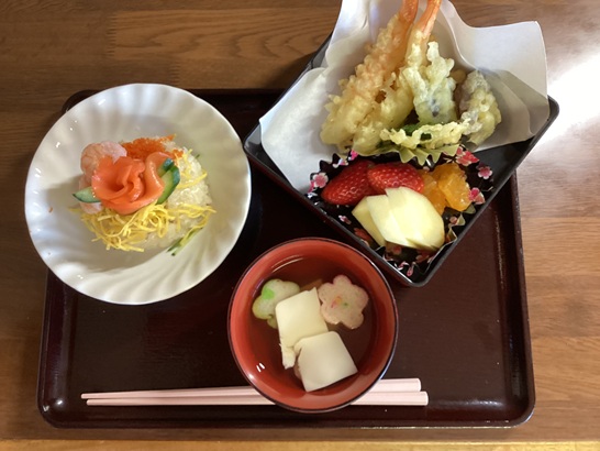 この日のゆらりのお昼・おやつは小正月お祝い膳!調理担当職員の腕が光ります。