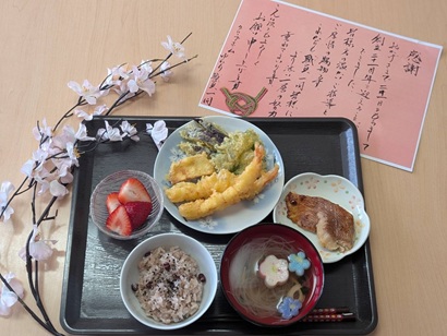 紅白饅頭に天ぷらと、当日はお祝い御前でした。