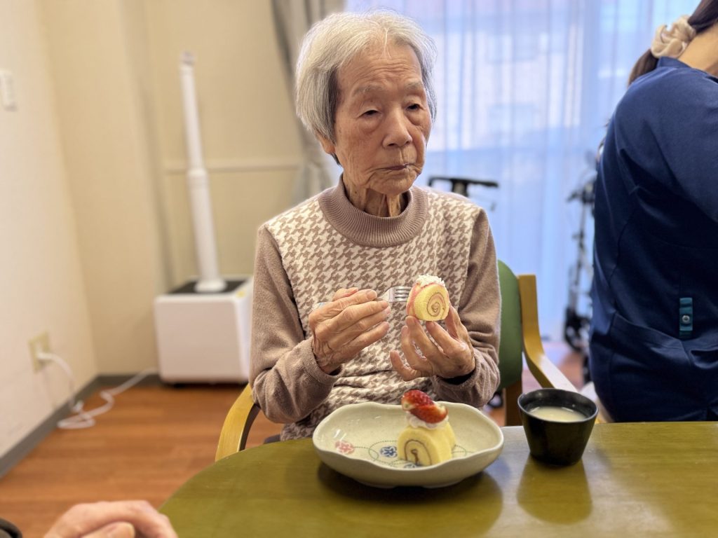 おやつにはイチゴのケーキに、甘酒を召し上がられ「甘酒うまいなあ!」と喜ばれる方、「イチゴ久しぶりに食べて美味しい!」と微笑まれるお客様も居られました。