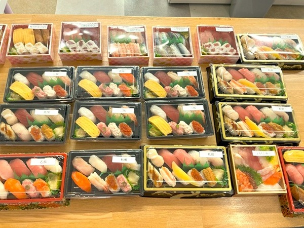 それぞれお好きなお寿司のパックを選んでいただき、事前に注文しました。